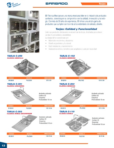 Entre sus productos destacados se encuentran las tarjas, diseñadas para ofrecer
